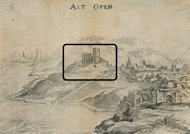 | Az Óbuda északi nézetű látképein "az előtérben ábrázolt monumentális templomrom" valós helye |